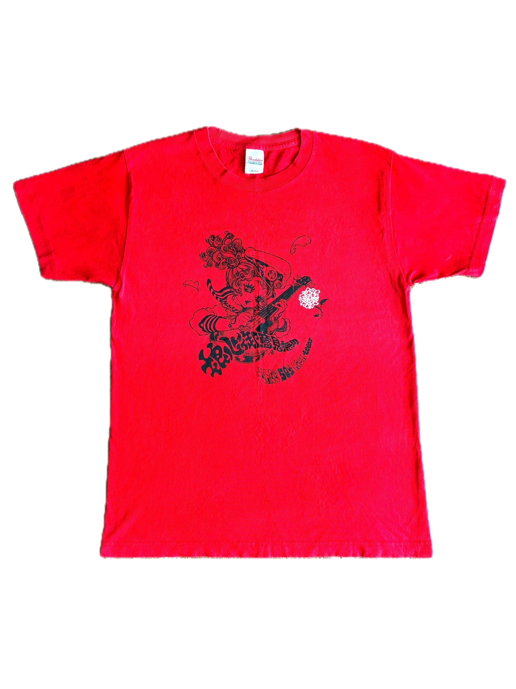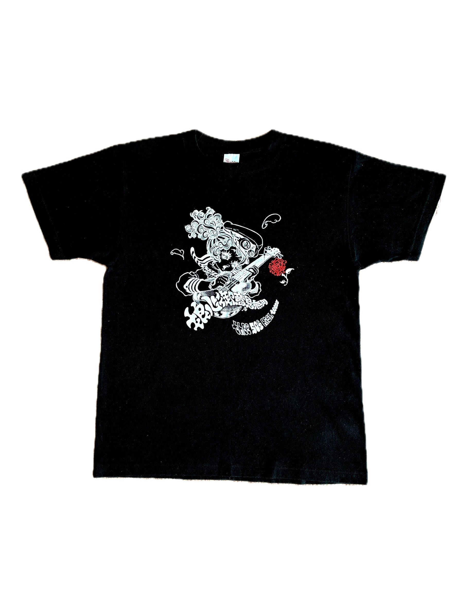 00年代初頭にライブ会場等で販売されていたThee 50’s High TeensのTシャツの在庫が発見されました。黒ボディ・白インク、赤ボディ・黒インクの2種類でサイズは、海外ツアー向けに作られておりMが日本国内サイズだとL相当となります。復刻ではなく当時の商品で多少のシワはありますが保存状態は良好です。